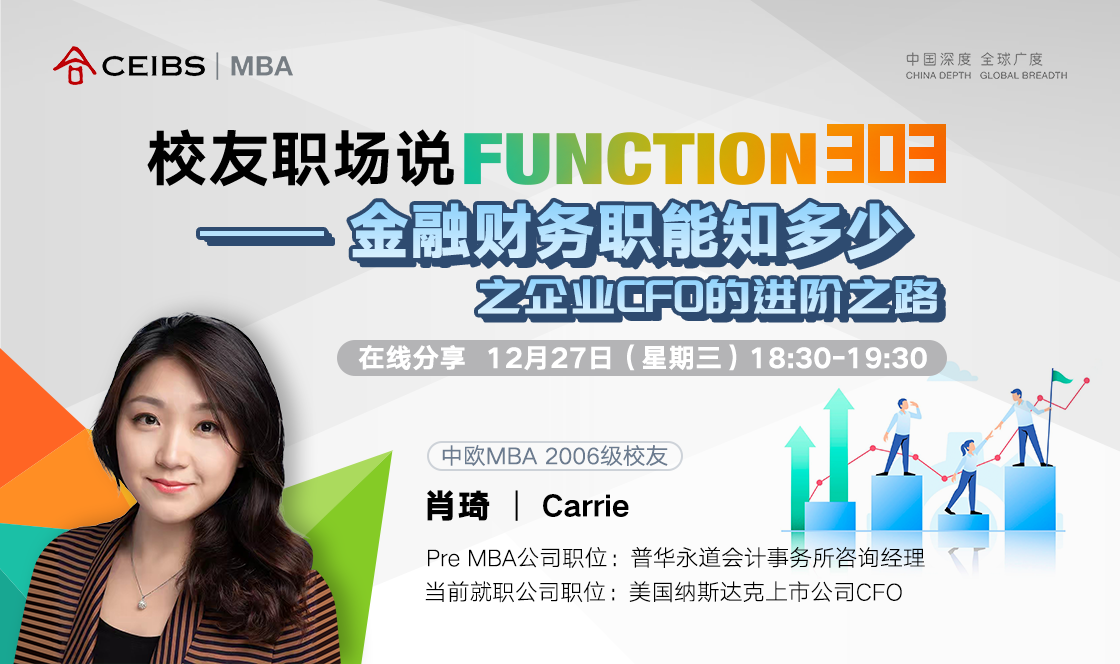 已毕业的校友中不乏继续从事就读MBA之前的职能工作,成为多年专耕在某一职能的资深职场人,对该行业职能所涉及的工作重心、发展机会以及人才需求有着最直接的体会。在该系列活动中,我们将从中欧MBA校友群中邀请深耕某一职能领域的资深职场人,深度解读该就业职能的百种可能!