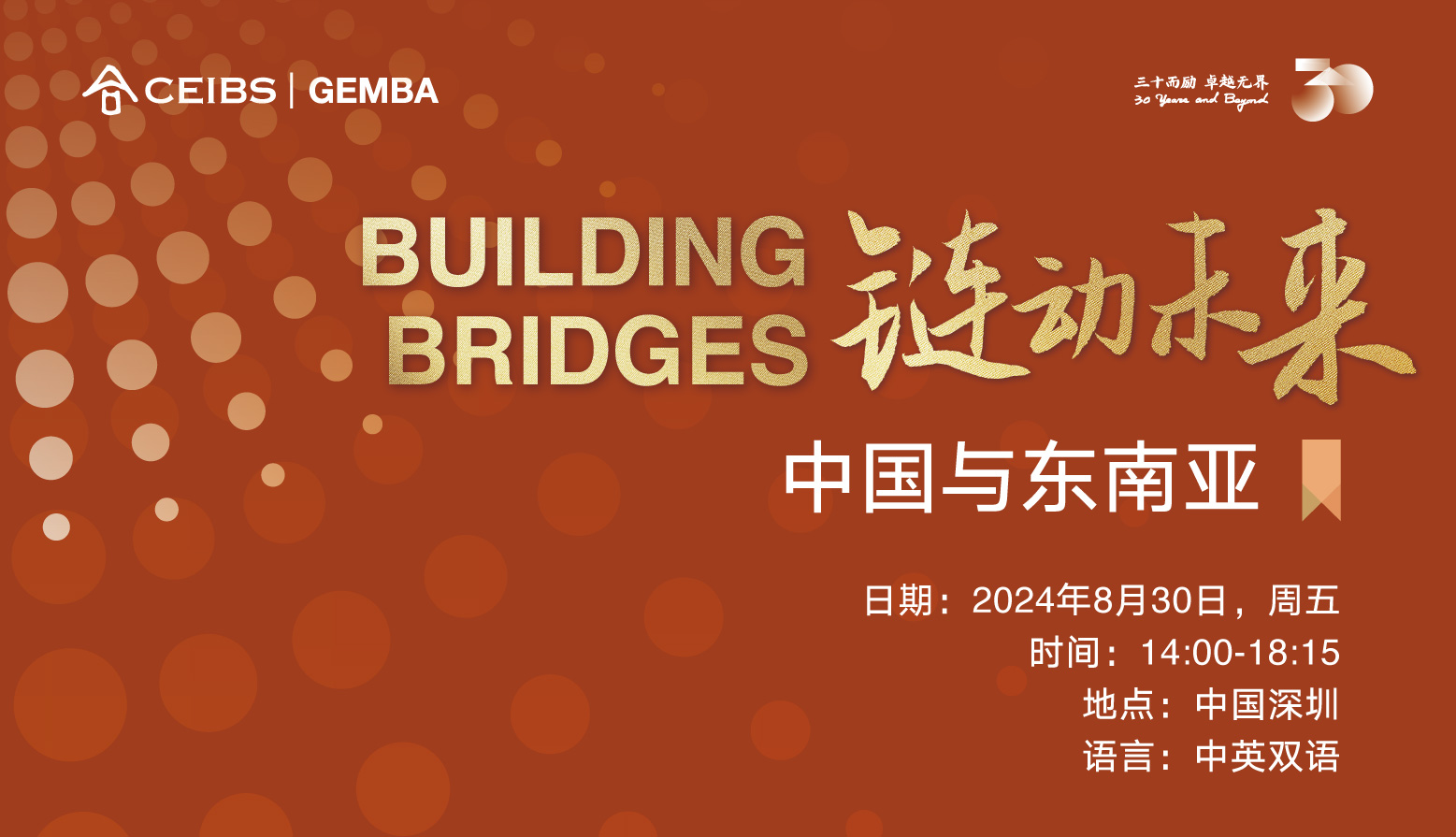 中欧Global EMBA旨在构建中国与世界之间的桥梁,增强不同商业文化间的相互理解和融合。“链动未来”系列活动由中欧Global EMBA课程发起,将跨越国界,以“中国与东南亚”,“中国与欧洲”,“中欧与非洲”,“中国与中东、北非”,“中国与美国”,“中国与拉美”为主题,在中国及全球各大城市举办一系列研讨会和论坛。每场盛会均汇聚中欧国际工商学院的杰出教授、行业权威专家及政商界领袖,他们将就影响中国与世界商业格局的宏观经济形势和地缘政治因素、各市场的营商环境、消费者趋势、供应链管理、人才管理以及面临的独特挑战与机遇等议题进行深入剖析与探讨。这一系列活动旨在为企业在日益错综复杂的国际环境中,提供宝贵的洞察与策略指导,助力其稳健前行,共创辉煌未来。