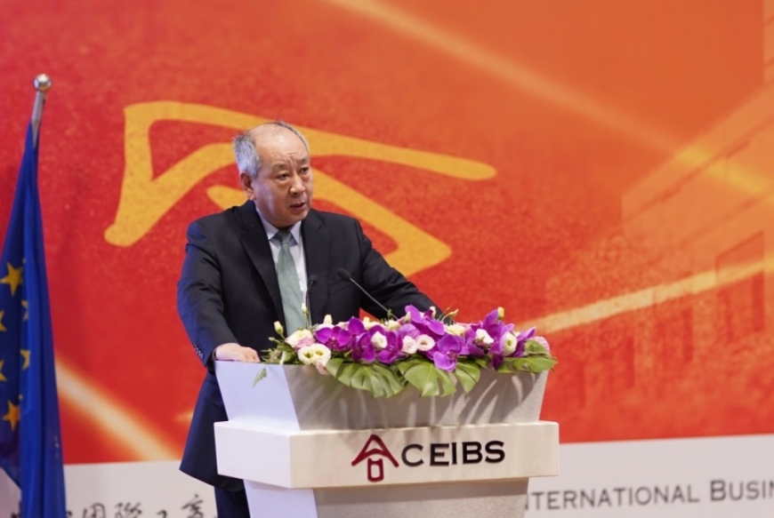 陈杰平教授作为教授代表发言。他说,中欧要培养的是兼具“中国深度、全球广度”,积极承担社会责任的领导者。在中欧,学习意味着要“认真、创新、追求卓越”,首要的就是“认真”二字。他寄语新生“进了中欧的门,就要做中欧的人;中欧的人,就是认真,希望同学们能够在中欧认真学习,认真生活,做一个认认真真的中欧人。”