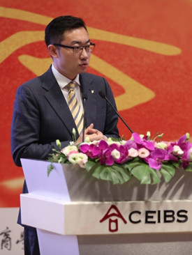 浦银国际控股有限公司高级副总裁尹哲代表FMBA2019级新生发言。他说,中欧首先吸引自己的是“国际化视野的宽度”,真正的国际化是融合,用中国的深度去承载全球的广度,从而博采众长,共同成长;第二是“校友广度”,同学们在学习交流的过程中,带来不同视角的见解,让我们受益匪浅;第三是“专业深度”,专业来源于实践,从而最终运用于实践。