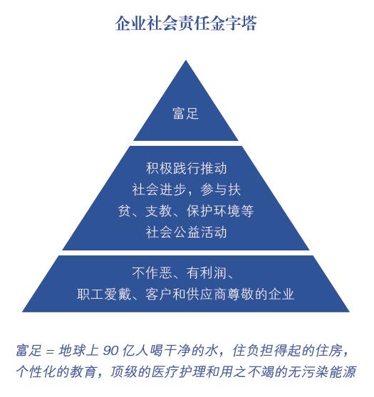 如下图所示,企业只有在不作恶的基础上,才能谈得上积极参与社会公益活动,推动社会进步,最终通过商业文明改善我们这个不甚完美的世界。