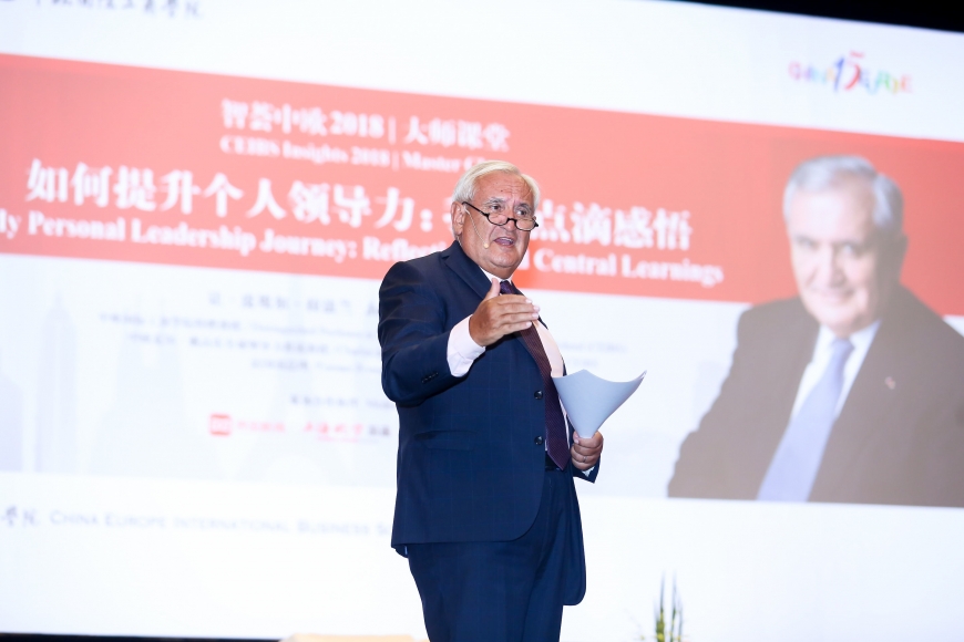 2018年7月,100多位中欧学生、教职员工和在沪法国商界精英共同聆听了法国前总理让-皮埃尔·拉法兰(Jean-Pierre Raffarin)的主题演讲。拉法兰教授认为,优秀的领导者应具备三个因素:激励他人的能力、明确使命并投身其中,以及强有力的道德指引。