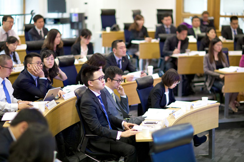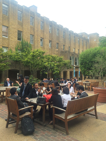 游学的前半程在著名的伦敦商学院(LBS)度过。“大学者,非大楼也,乃大师也”,伦敦商学院给人的印象正是如此。没有巍峨高耸的象牙塔,没有宽敞宏大的运动场,临街建筑的入口就是低调内敛的主校门,若不留意其蓝底红边的铭牌,几乎会与这所在2015年《金融时报》全球商学院排名中位列第二的知名学府擦肩而过。学校的精髓在于教书育人,吸引饱学之士,培养济世之才。伦敦商学院在师资方面的投入,从这次为我们上课的教授阵容中就可见一斑,有沃顿毕业的少壮派代表Alex Edmans教授讲授的《实用投资策略与企业社会责任》,有富有监管经验的可爱的苏格兰老头Andrew Scott教授侃侃而谈《世界展望》,他开阔的视野,对于全球宏观经济的缜密分析,帮助我们打开格局。除此之外,三天的课程中还安排了对《实物期权》、《证券化导论》、《私募期权》和《国际估值》的等话题的讲述和讨论,不一而足。午饭后,同学们在院子里肆意享受着伦敦难得的好天气,LBS精致的小院子上空飘满了来自中国金融精英们的声音。