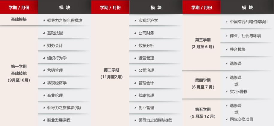 MBA 课程首页 课程介绍 课程概况 课程设计 一年快速学制 合作学位项目 综合战略咨询项目 实境教学中国模块 海外选修课 海外交换学习 校园生活 学生概况 学生生活 学生大使 学生会成员 学生故事 良师益友项目 申请和录取 申请条件 申请 费用和资助 MBA公开课 中欧MBA预录取 职业发展 公司招聘 学生职业发展支持 校友职业发展支持 校友分享 InnoLab创新创业中心 InnoLab创新创业中心 InnoLab活动 INNOVATEChina 活动预告 中欧MBA体验营 联系我们 管理硕士MiM MiM首页 课程介绍 课程设置 ESCP介绍 师资一览 申请指南 申请条件 申请流程 学费及奖学金 全球四大校区 中欧中国上海校区 ESCP法国巴黎校区 ESCP英国伦敦校区 中欧瑞士苏黎世校区 住宿信息 近期活动 联系我们 常见问题 在线申请 相关链接 MBA招生宣传册 MBA2025届就业报告 GMAT官方模拟测试 MBA课程咨询 欢迎您咨询全职全英文,在上海校区授课的中欧MBA课程。请您提供以下信息,我们的招生人员会尽快与您联系。 姓名 请输入姓名 公司 请输入公司 职位 请输入职位 工作年限 请输入工作年限 所在城市 请输入所在城市 邮箱 请输入邮箱 电话 请输入电话 国籍 请选择 China Afghanistan Albania Algeria American Samoa Andorra Angola Anguilla Antigua and Barbuda Argentina Armenia Aruba Australia Austria Azerbaijan Bahamas Bahrain Bangladesh Barbados Belarus Belgium Belize Benin Bermuda Bhutan Bolivia Bosnia and Herzegovina Botswana Brazil British Virgin Islands Brunei Darussalam Bulgaria Burkina Faso Burundi Cambodia Cameroon Canada Cape Verde Cayman Islands Central African Republic Chad Channel Islands Chile Colombia Comoros Congo Cook Islands Costa Rica Cote d'Ivoire Croatia Cuba Cyprus Czech Republic Democratic People's Republic of Korea Democratic Republic of the Congo Denmark Djibouti Dominica Dominican Republic East Timor Ecuador Egypt El Salvador Equatorial Guinea Eritrea Estonia Ethiopia Faeroe Islands Falkland Islands (Malvinas) Fiji Finland France French Guiana French Polynesia Gabon Gambia Georgia Germany Ghana Gibraltar Greece Greenland Grenada Guadeloupe Guam Guatemala Guinea Guinea-Bissau Guyana Haiti Holy See Honduras Hong Kong Special Administrative Region of China Hungary Iceland India Indonesia Iran (Islamic Republic of) Iraq Ireland Isle of Man Israel Italy Jamaica Japan Jordan Kazakhstan Kenya Kiribati Kuwait Kyrgyzstan Lao People's Democratic Republic Latvia Lebanon Lesotho Liberia Libyan Arab Jamahiriya Liechtenstein Lithuania Luxembourg Macao Special Administrative Region of China Madagascar Malawi Malaysia Maldives Mali Malta Marshall Islands Martinique Mauritania Mauritius Mexico Micronesia Federated States of Monaco Mongolia Montserrat Morocco Mozambique Myanmar Namibia Nauru Nepal Netherlands Netherlands Antilles New Caledonia New Zealand Nicaragua Niger Nigeria Niue Norfolk Island Northern Mariana Islands Norway Occupied Palestinian Territory Oman Other Pakistan Palau Panama Papua New Guinea Paraguay Peru Philippines Pitcairn Poland Portugal Puerto Rico Qatar Republic of Korea Republic of Moldova Reunion Romania Russian Federation Rwanda Saint Helena Saint Kitts and Nevis Saint Lucia Saint Pierre and Miquelon Saint Vincent and the Grenadines Samoa San Marino Sao Tome and Principe Saudi Arabia Senegal Seychelles Sierra Leone Singapore Slovakia Slovenia Solomon Islands Somalia South Africa Spain Sri Lanka Sudan Suriname Svalbard and Jan Mayen Islands Swaziland Sweden Switzerland Syrian Arab Republic Taiwan, China Tajikistan Thailand The former Yugoslav Republic of Macedonia Togo Tokelau Tonga Trinidad and Tobago Tunisia Turkey Turkmenistan Turks and Caicos Islands Tuvalu Uganda Ukraine United Arab Emirates United Kingdom United Republic of Tanzania United States United States Virgin Islands Uruguay Uzbekistan Vanuatu Venezuela Viet Nam Wallis and Futuna Islands Western Sahara Yemen Yugoslavia Zambia 请选择国籍 本科学校 请输入本科学校 就读意愿 请选择准备申请MBA刚开始了解中欧MBA暂不确定是否申请请选择就读意愿 PrivacyPolicy 我已经阅读并同意隐私条款,同意通过本人提交的联系方式如电子邮件和电话接收中欧国际工商学院发送的课程信息和Newsletter等。我已知晓我拥有随时撤回同意的权利。 请同意隐私条款 我已经阅读并同意隐私条款,同意通过本人提交的联系方式如电子邮件和电话接收中欧国际工商学院发送的课程信息和Newsletter等。我已知晓我拥有随时撤回同意的权利。 Tracking code 提交 面包屑 首页 课程 硕士课程(全日制) MBA 课程首页 课程表 *一年学制:2015年起,中欧MBA课程推出了一年学制,为学员提供更多灵活选择。学员通过更紧凑的课程安排,在12个月内完成全部学分,降低机会成本,一年回归工作岗位。 适合群体: 公司资助、创业者、家族企业继承者,以及欲深入了解中国市场及发展机遇并已有明确就业机会的学生。 申请将于开学后启动。