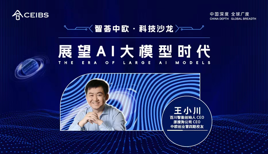 10月14日(周六)下午,受“创新中欧·人工智能探索与实践小组”的邀约,王小川将做客中欧北京校区,带来《展望AI大模型时代》的主题分享,并与中欧校友现场互动交流。