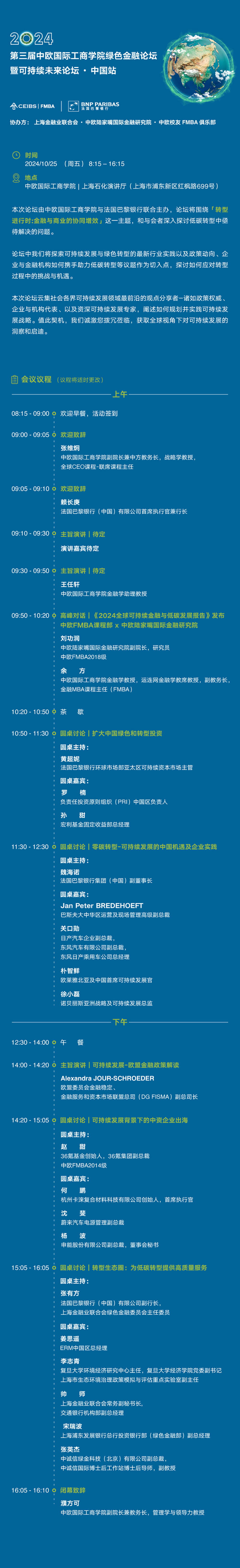 报名服务中心 全部课程 课程概览 MBA 在职MBA 金融MBA 管理硕士MiM EMBA Global EMBA HEMBA 工商管理博士DBA PhD 高管教育 创业营 报名服务中心 全部课程 课程概览 MBA 在职MBA 金融MBA 管理硕士MiM EMBA Global EMBA HEMBA 工商管理博士DBA PhD 高管教育 创业营 报名服务中心 全部课程 课程概览 MBA 在职MBA 金融MBA 管理硕士MiM EMBA Global EMBA HEMBA 工商管理博士DBA PhD 高管教育 创业营 报名服务中心 全部课程 课程概览 MBA 在职MBA 金融MBA 管理硕士MiM EMBA Global EMBA HEMBA 工商管理博士DBA PhD 高管教育 创业营 FMBA一览 课程介绍 课程设置 授课安排 师资教研 良师益友 F4系列 社会责任 F课堂 FMBA影像 同窗学友 班级构成 学生素描 学生生活 学生故事 招生活动 申请报名 招生公告 申请条件 申请流程 学费信息 奖学金 常见问题 联系我们 课程介绍册 申请指南 FMBA课程咨询 欢迎您咨询中欧FMBA课程,请提供以下信息,我们的招生老师会尽快与您联系。 姓名 请输入姓名 手机 请输入手机 邮箱 请输入邮箱 公司 请输入公司 职位 请输入职位 最高学位 请选择博士硕士学士大专其他请选择最高学位 请选择类型 请选择预约来学院咨询预约与招生老师电话咨询请选择类型 PrivacyPolicy 我已经阅读并同意隐私条款,同意通过本人提交的联系方式如电子邮件和电话接收中欧国际工商学院发送的课程信息和Newsletter等。我已知晓我拥有随时撤回同意的权利。 请同意隐私条款 我已经阅读并同意隐私条款,同意通过本人提交的联系方式如电子邮件和电话接收中欧国际工商学院发送的课程信息和Newsletter等。我已知晓我拥有随时撤回同意的权利。 Tracking code: 提交 申请流程 联系我们 中欧国际工商学院 金融MBA(FMBA)课程部 上海市红枫路699号,201206 (8621) 2890 5288 fmba@ceibs.edu 联系我们 电话:(8621) 2890 5288 电邮: fmba@ceibs.edu 面包屑 首页 课程 硕士课程(非全日制) 金融MBA 招生活动 2024年10月25日 第三届中欧国际工商学院绿色金融论坛暨可持续未来论坛 · 中国站 后退 打印友好页面