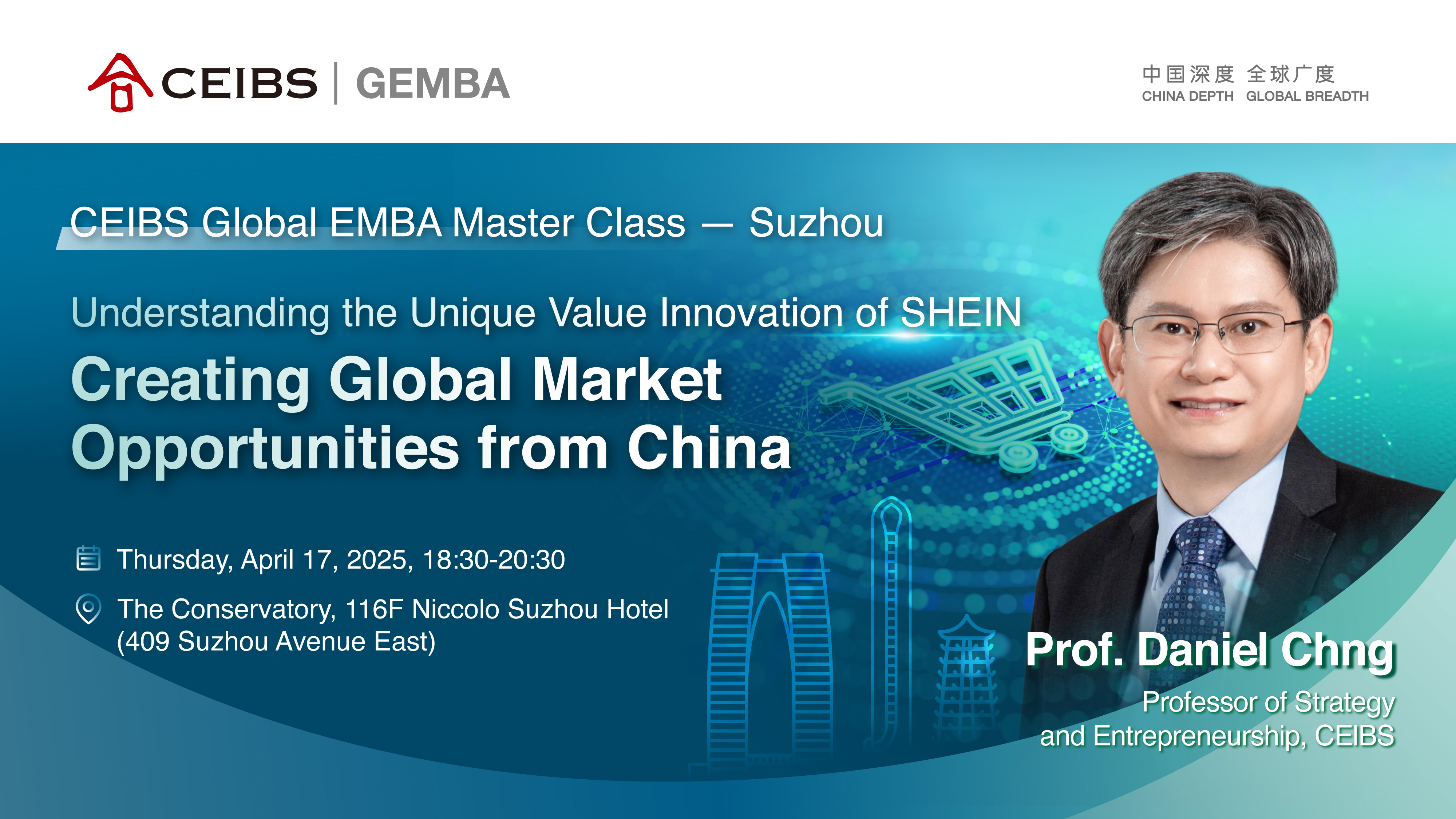 本次大师课堂将带给您原汁原味的中欧Global EMBA课堂体验,通过对希音(SHEIN)的案例剖析以及互动研讨,使参与者能深入探究价值创新的原理,找到切实可用的工具和框架,学习如何挖掘新的市场机遇。本次活动还将分享如何把战略创新思维和卓越运营能力融合起来,从而推动企业实现增长。