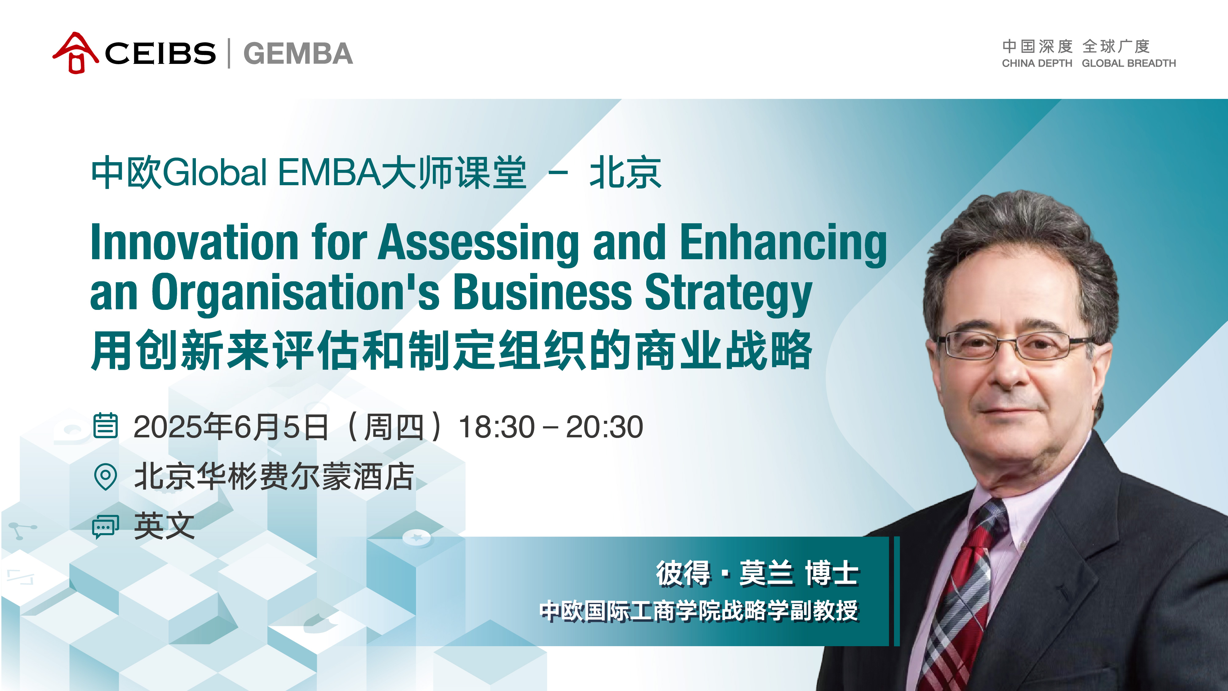 中欧国际工商学院诚挚邀请您参加于2025年6月5日下午在北京举办的大师课堂-用创新来评估和制定组织的商业战略。