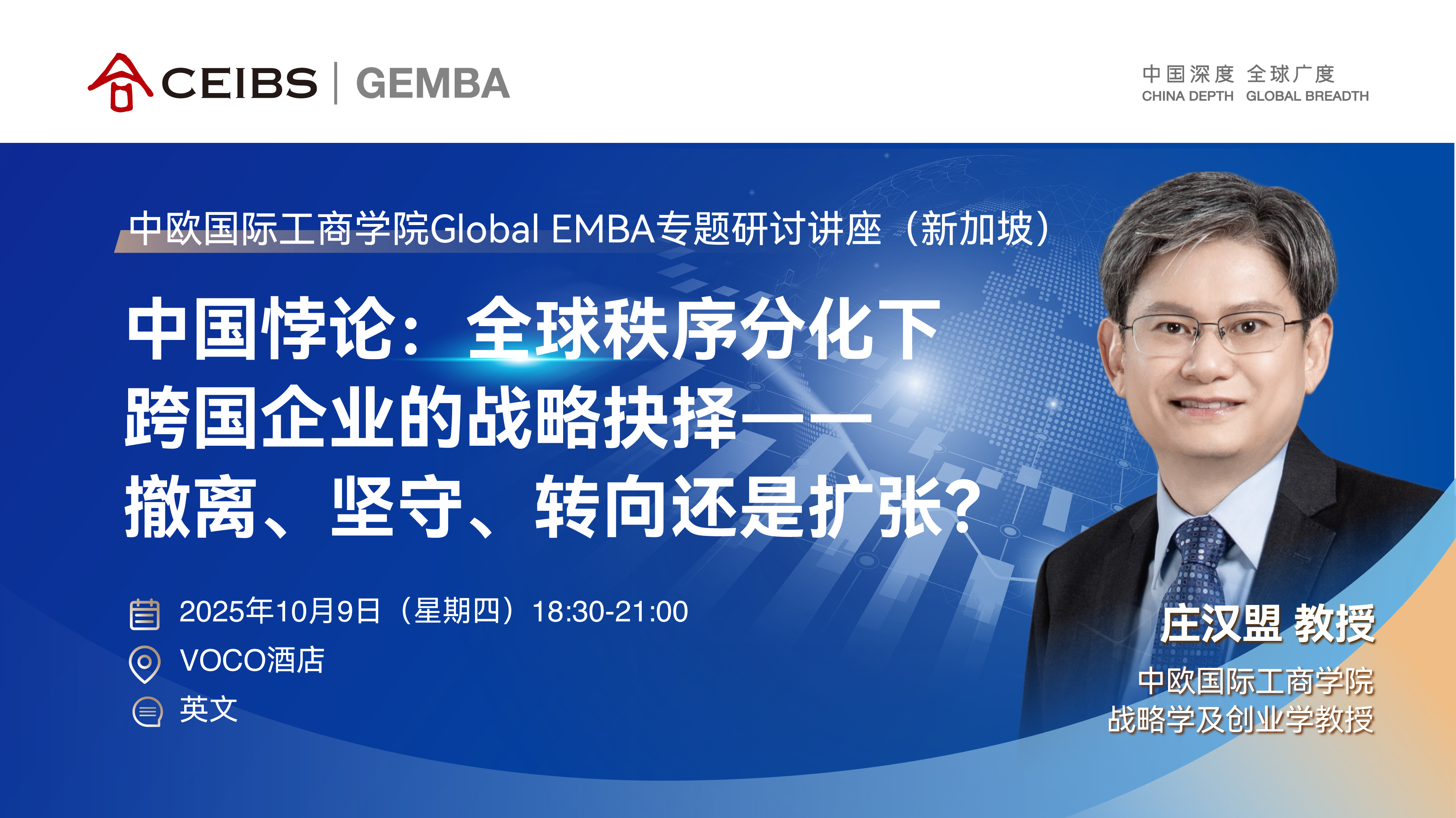 19:20-20:30 讲座 | 庄汉盟,中欧国际工商学院战略学及创业学教授
