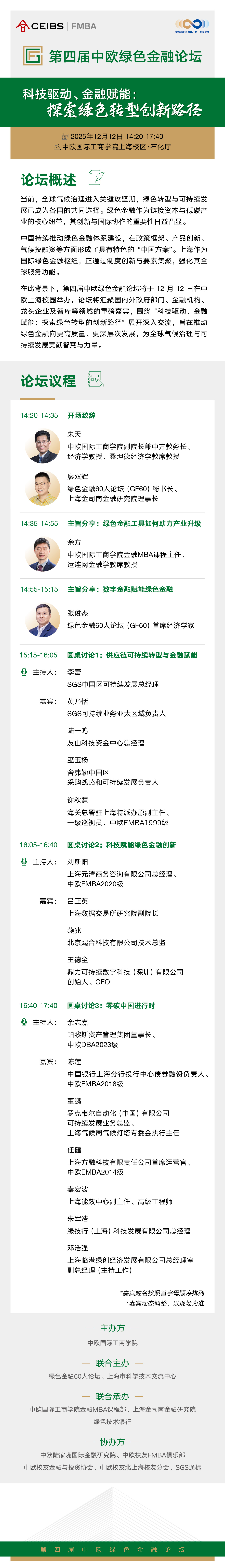 报名服务中心 全部课程 课程概览 MBA 在职MBA 金融MBA 管理硕士MiM EMBA Global EMBA HEMBA 工商管理博士DBA PhD 高管教育 创业营 报名服务中心 全部课程 课程概览 MBA 在职MBA 金融MBA 管理硕士MiM EMBA Global EMBA HEMBA 工商管理博士DBA PhD 高管教育 创业营 报名服务中心 全部课程 课程概览 MBA 在职MBA 金融MBA 管理硕士MiM EMBA Global EMBA HEMBA 工商管理博士DBA PhD 高管教育 创业营 报名服务中心 全部课程 课程概览 MBA 在职MBA 金融MBA 管理硕士MiM EMBA Global EMBA HEMBA 工商管理博士DBA PhD 高管教育 创业营 FMBA一览 课程介绍 课程设置 授课安排 师资教研 良师益友 F4系列 社会责任 F课堂 FMBA影像 同窗学友 班级构成 学生素描 学生生活 学生故事 招生活动 申请报名 招生公告 申请条件 申请流程 学费信息 奖学金 常见问题 联系我们 课程介绍册 申请指南 FMBA课程咨询 欢迎您咨询中欧FMBA课程,请提供以下信息,我们的招生老师会尽快与您联系。 姓名 请输入姓名 手机 请输入手机 邮箱 请输入邮箱 公司 请输入公司 职位 请输入职位 最高学位 请选择博士硕士学士大专其他请选择最高学位 请选择类型 请选择预约来学院咨询预约与招生老师电话咨询请选择类型 PrivacyPolicy 我已经阅读并同意隐私条款,同意通过本人提交的联系方式如电子邮件和电话接收中欧国际工商学院发送的课程信息和Newsletter等。我已知晓我拥有随时撤回同意的权利。 请同意隐私条款 我已经阅读并同意隐私条款,同意通过本人提交的联系方式如电子邮件和电话接收中欧国际工商学院发送的课程信息和Newsletter等。我已知晓我拥有随时撤回同意的权利。 Tracking code: 提交 申请流程 联系我们 中欧国际工商学院 金融MBA(FMBA)课程部 上海市红枫路699号,201206 (8621) 2890 5288 fmba@ceibs.edu 联系我们 电话:(8621) 2890 5288 电邮: fmba@ceibs.edu 面包屑 首页 课程 硕士课程(非全日制) 金融MBA 招生活动 2025年12月12日 第四届中欧绿色金融论坛 科技驱动、金融赋能:探索绿色转型的创新路径 后退 打印友好页面