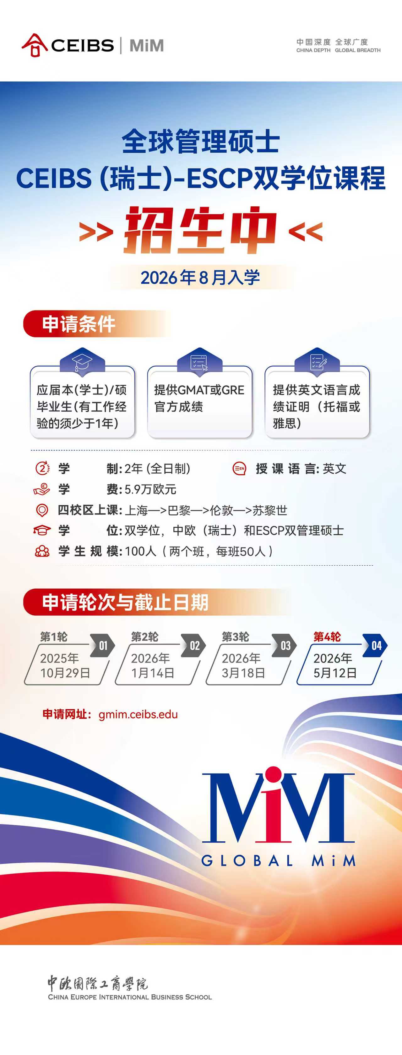 详细信息咨询请联系Global MiM招生Sissi老师,请致电+86-17862919622或添加微信:ceibsglobalmim