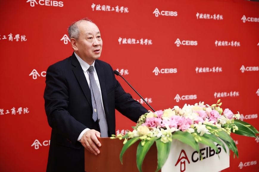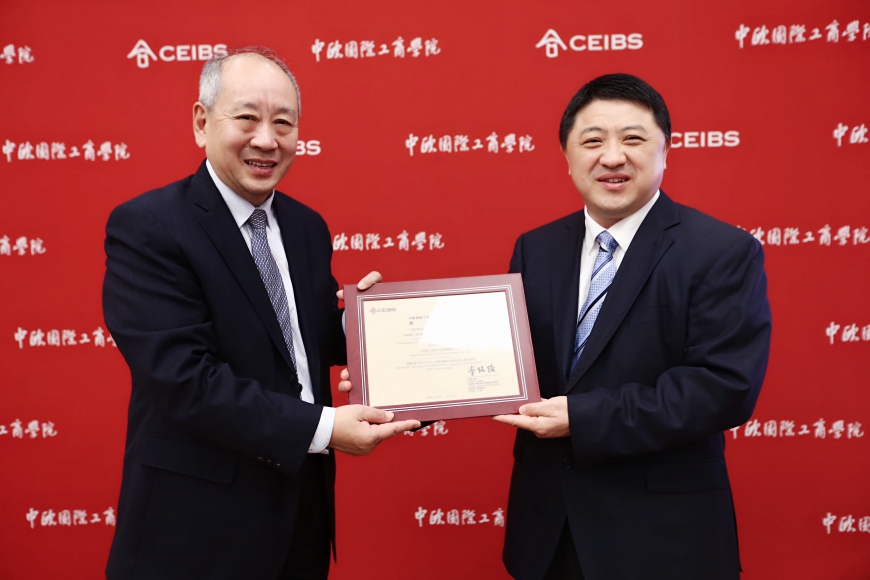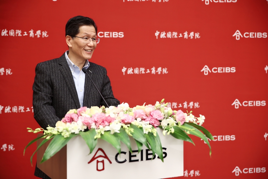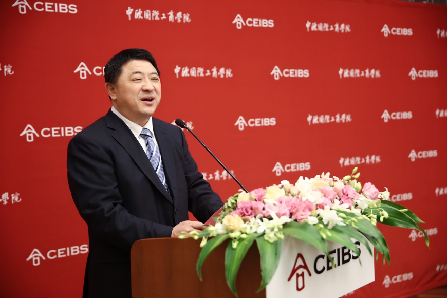 仪式上,朱天教授首先代表EMBA课程部向黄承斌校友及铁人体育企业代表致欢迎辞。他回忆道,铁人体育的产品过去主打海外市场,自黄承斌校友入读中欧后,企业开始谋求战略转型,由主打海外市场转向开发国内市场,并已取得骄人的成绩。朱天教授表示,黄承斌校友在企业发展的同时不忘感恩母校,是一名具有“中国深度、全球广度”和“责任高度”的中欧校友典范。