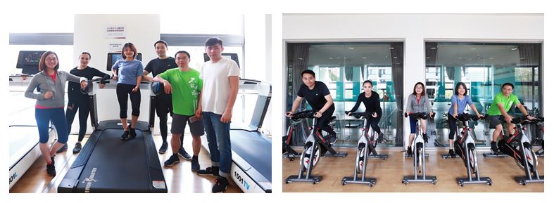 中欧学员及员工代表体验铁人体育捐赠的健身器械