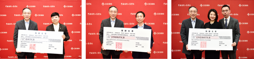 中欧国际工商学院院长、教育发展基金会理事长李铭俊教授,经济学与金融学教授、吴敬琏经济学教席教授、副教务长许斌,管理学教授、米其林领导力和人力资源管理教席教授、家族传承研究中心联合主任李秀娟,教务长办公室主任徐惠娟女士,校友关系事务部主任傅丹阳女士与部分校友及员工代表共同见证此次捐赠仪式。