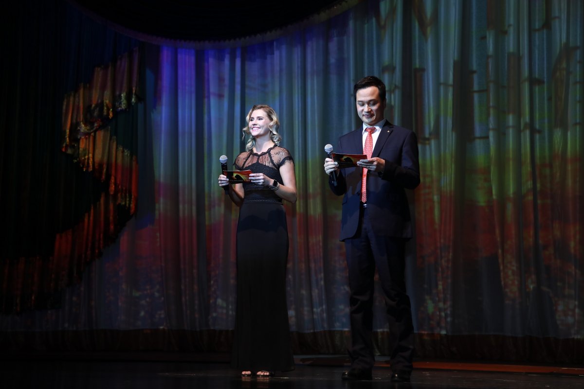 晚上七点半,来自学院MBA课程的同学Emma和EMBA办公室的刘伟一袭华服,作为主持人闪亮登场,对到场的中欧人表示了热烈的欢迎,并代表学院领导为大家送上了新年祝福。随后演出准时开始,随着舞台帷幕缓缓开启,一幅华丽的场景展现在观众面前,将观众带入了19世纪的美国。一曲激昂的《正义与邪恶》烘托出美国内战前夕南北两方对峙的紧张,场景一转,观众们来到了塔拉庄园,聆听斯嘉丽少女时代孤独而轻快的吟唱。剧情随两对男女主角的故事跌宕起伏,曲目时而欢快,时而热烈,时而浪漫,时而悲情,当邦妮落马和梅兰妮离世,奶妈一曲《悲歌》让很多观众潸然泪下。结尾《无动于衷》将那句经典的“明天又是新的一天”烘托得淋漓尽致。28首精彩旋律曲曲动人,声声入耳,吟唱出乱世间的悲欢离合,感人至深。全场演员唱跳俱佳,最终以一曲《所有人》谢幕,在持续不断的掌声中,帷幕缓缓落下。两个半小时的演出完美而震撼,丝毫不会让人感到疲惫和漫长,反而意犹未尽。演出结束后,中欧人的热情在朋友圈继续发酵。学院校友关系事务部也开展了写剧评赢好礼活动,征集优秀剧评并送出了主演形象定制U盘及音乐剧专属精美礼品。