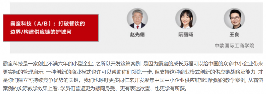 具体来地,霸蛮科技系列案例聚焦消费升级和互联网时代背景下,餐饮企业应该如何进行商业模式创新:在消费端,如何利用社群营销和全渠道有效触达消费者;在供应端,如何实现高效的供应链管理和精细化运营。其中,案例A“打破餐饮的边界”回顾了霸蛮早期通过单品策略和社群营销跻身新式餐饮“网红”的创业经历,以及随着规模的扩大,霸蛮如何打破传统餐饮门店的时空界限,通过外带、外卖和零售业务满足消费者随时随地的需求,并通过餐饮和零售、线上线上渠道的相互引流,打出了“立体作战模式”的组合拳。案例B“构建供应链的护城河”讲述了霸蛮如何在近两年时间里逐步提高供应链管理能力,优化从供应到交付的供应链网络。一些做法包括在战略层面建立明确的供应链战略,在战术层面对餐饮和零售供应链进行细分和差异化梳理,在策略层面通过多种方法和工具的使用来持续改善供应链中不同环节的运作效率、减低成本和缩短提前期等。