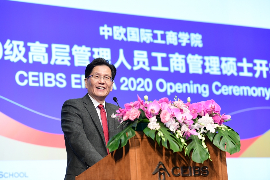 中欧国际工商学院院长、管理学教授汪泓博士,副院长兼中方教务长、战略学教授张维炯博士,副教务长、EMBA课程主任、经济学教授朱天,2018级学长代表、2020级新生代表和新生出席此次典礼。