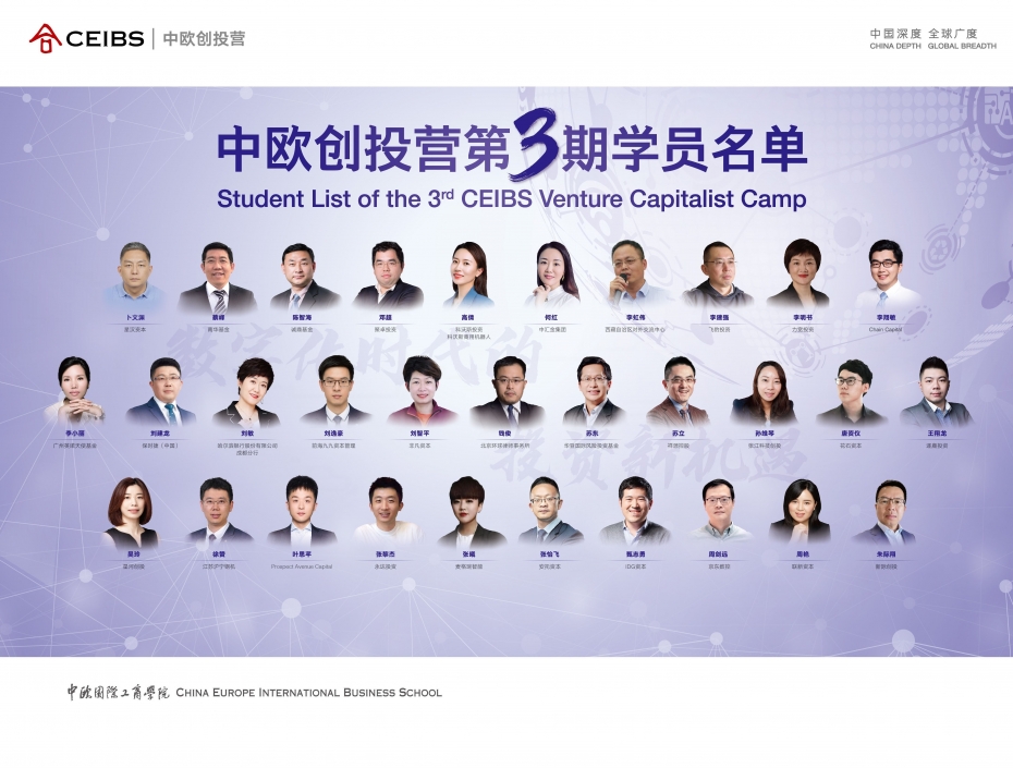 中欧创投营是中欧创业营的姊妹课程,目前已成功举办两期,包括九合创投创始人王啸、君联资本董事总经理葛新宇、启明创投合伙人黄佩华、金浦投资董事总经理范寅等在内的优秀投资人就读了该项课程。