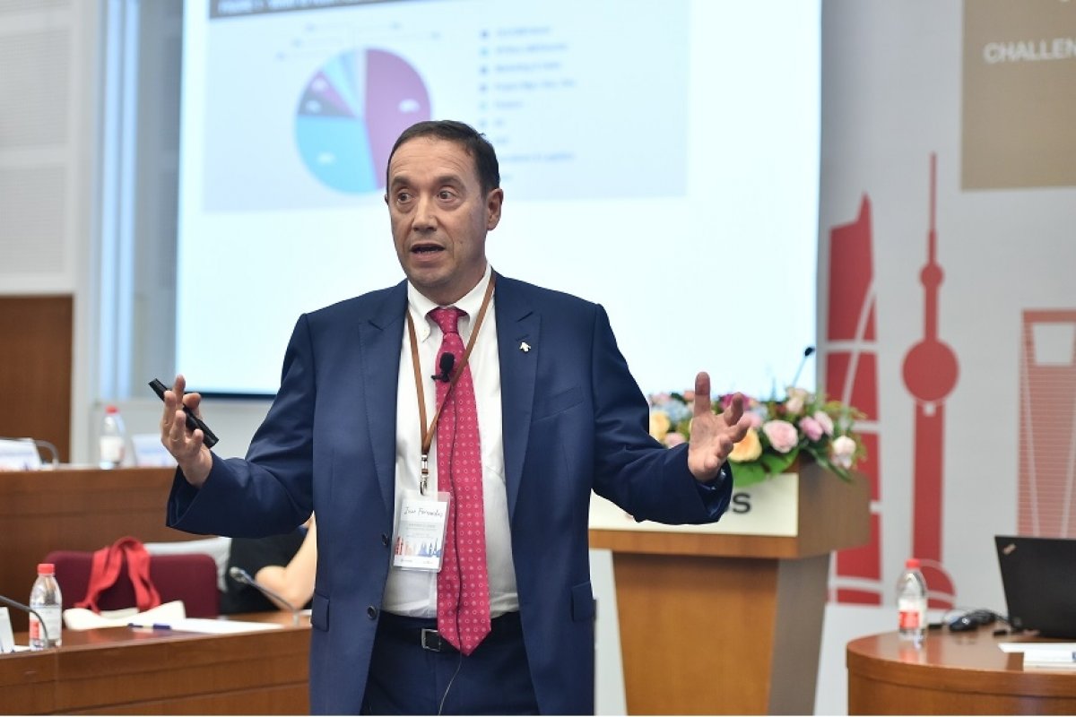 中欧国际工商学院管理学教授、副教务长、MBA课程主任范悦安(Juan A. Fernandez)在题为“中国商业的现状与未来”的演讲中分享了2018《中国商业报告》的调研结果。报告显示,多数公司将激烈的竞争认为是在中国面临的最大外部挑战,其次是上升的劳动力成本,第三是中国经济增速放缓。与以往不同的是,以前外企认为主要竞争对手是在华的其他外企,现在则是中国本土的企业。他指出,中国在过去二三十年间经历了飞速的发展,最重要的原因就是数字革命。在数字技术主导市场的今天,中欧国际工商学院开创了实境教学法,并结合数字领域知识进行教学的完善,以期在不断变化的全球形势下保持优势。