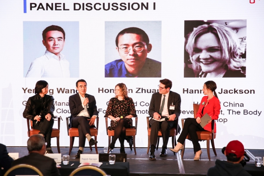 圆桌讨论一(从左往右:庄宏斌、王业明、Hannah Jackson、Edward Brewster、Martina Fuchs)