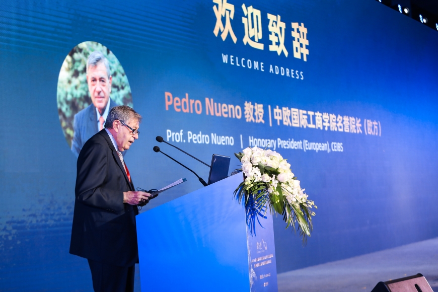 中欧国际工商学院欧方名誉院长佩德罗•雷诺教授(Pedro Nueno)和中国社科院学部委员、《中国经营报》社长金碚教授致欢迎辞。佩德罗•雷诺表示,今年是中欧建院25周年。中欧持续关注企业的永续经营,并期望在中国诞生超过百年的家族企业。