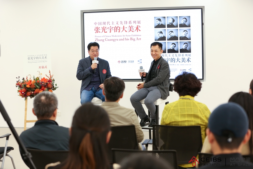 2019年11月2日,中欧国际工商学院打造的首个艺术空间“凹凸空间”在北京校区正式启幕,40多位艺术界专家和中欧师友共同见证首展“中国现代主义先锋系列——张光宇的大美术”开幕。前国家博物馆副馆长陈履生先生出席活动并致辞,展览协办方——势象空间创始人李大钧,展览策展人——星空间画廊的艺术总监房方共同为观众进行了导览和讲座。