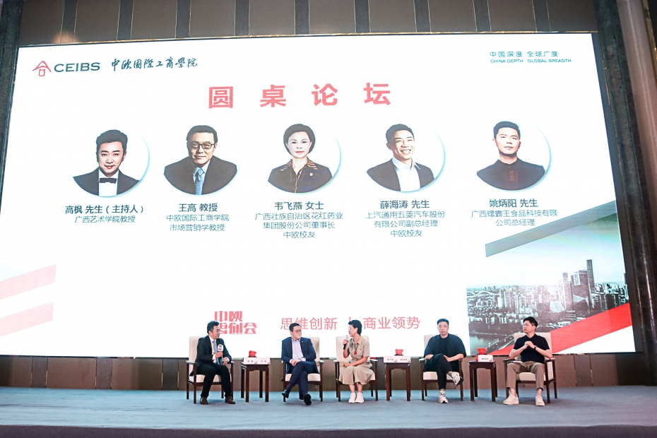 2021年5月20日下午,中欧国际工商学院2021第六届思创会第四站在广西柳州举办。本次活动聚焦“中国新锐品牌的崛起与企业价值创新”这一主题,中欧深圳校区副首席代表孔飙,中欧国际工商学院市场营销学教授、副教务长、高管教育负责人王高,上汽通用五菱汽车股份有限公司副总经理、中欧首席营销官(CMO)课程在读学生薛海涛,广西壮族自治区花红药业集团股份公司董事长、中欧校友韦飞燕(EMBA2004、HEMBA2018),广西螺霸王食品科技有限公司总经理姚炳阳等多位嘉宾出席。当天活动吸引了柳州及周边城市近300位企业家及中欧校友参加,大家齐聚一堂共同探讨传统工业城市如何孵化出新锐品牌、老牌企业如何在数字化时代实现价值创新等多个议题。