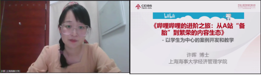 《哔哩哔哩的进阶之旅》案例作者许晖,主要围绕“以学生为中心的案例开发和教学”的主题,通过选题由来、案例故事解析、不同课堂(本科与MBA)教学笔记的重点问题梳理等方面,介绍了这篇案例的开发过程。许晖老师最后总结道,一个好的案例,在开发上需要有耐心,需要讲好案例故事,同时,在教学笔记的写作上,不能将“教学型”和“研究型”搞混,但两者也并非水火不容,对于教学型案例而言,学术研究或许是一个很好的辅助。