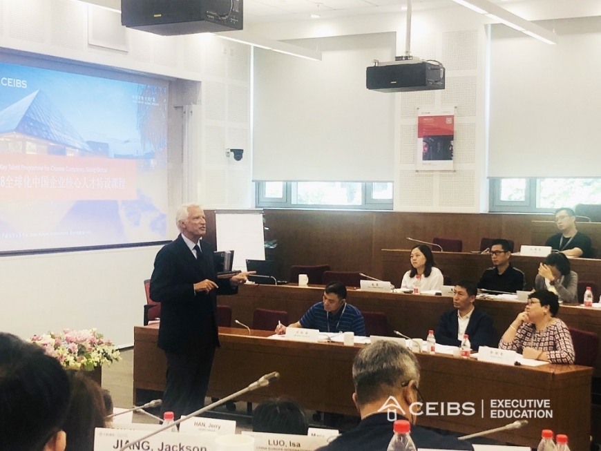 中欧作为中国和欧洲之间强大纽带的角色与定位,为中国与世界其他国家提供了思想交流的平台,迎接政界和学术界的领军人物以及各行各业的思想领袖。随着中欧特聘教授、法国前总理多米尼克·德维尔潘先生加盟明星教授阵容,2018TGA课程将更受期待。课程首日,首先由李铭俊院长从外交角度分析地缘政治和中国企业全球化路径 。紧接着,德维尔潘先生为大家解读如何通过对出海目的国的政经文环境调查,通过相互尊重的谈判方式化解企业走出去遇到的共性问题 。在未来的课程模块中,中欧诸多明星教授、重量级嘉宾也将纷纷登场与同学们共同探讨中国企业全球化之路所面临的机遇与挑战。