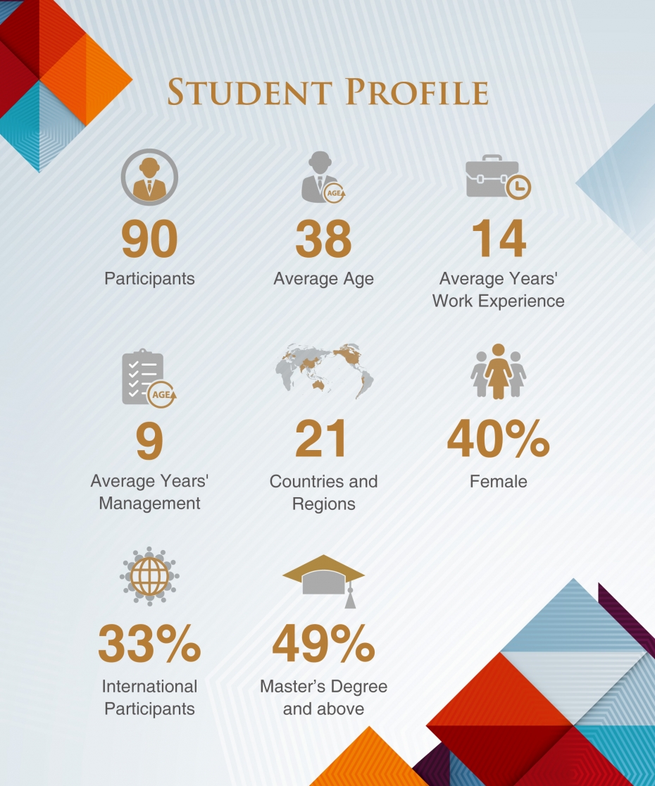 在2020级新生中,国际学生比例达33%,来自全球21个国家和地区。拥有硕士及以上学历的学生占比高达49%,拥有博士学历的学生占比8%。在十多年的职场历练后,他们渴望进一步提升领导力和战略思维,以迎接全球化的挑战,成长为具有“中国深度,全球广度”的国际化管理者。