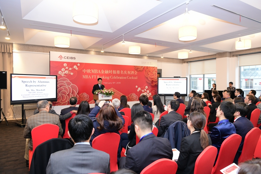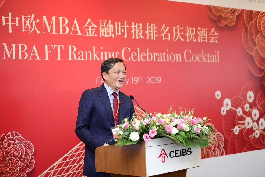 2019年2月19日,近100位中欧国际工商学院教授、MBA校友及在校学生、导师、雇主代表、员工齐聚中欧上海校区,共同庆祝中欧MBA在英国《金融时报》(Financial Times) 2019年全日制MBA课程全球百强榜单跃居全球第五。中欧院长 ( 欧方)迪帕克•杰恩(Dipak Jain)教授、副院长兼教务长丁远教授、副院长兼中方教务长张维炯教授、副教务长兼MBA课程主任范悦安(Juan Antonio Fernandez)教授均出席了酒会并致辞。