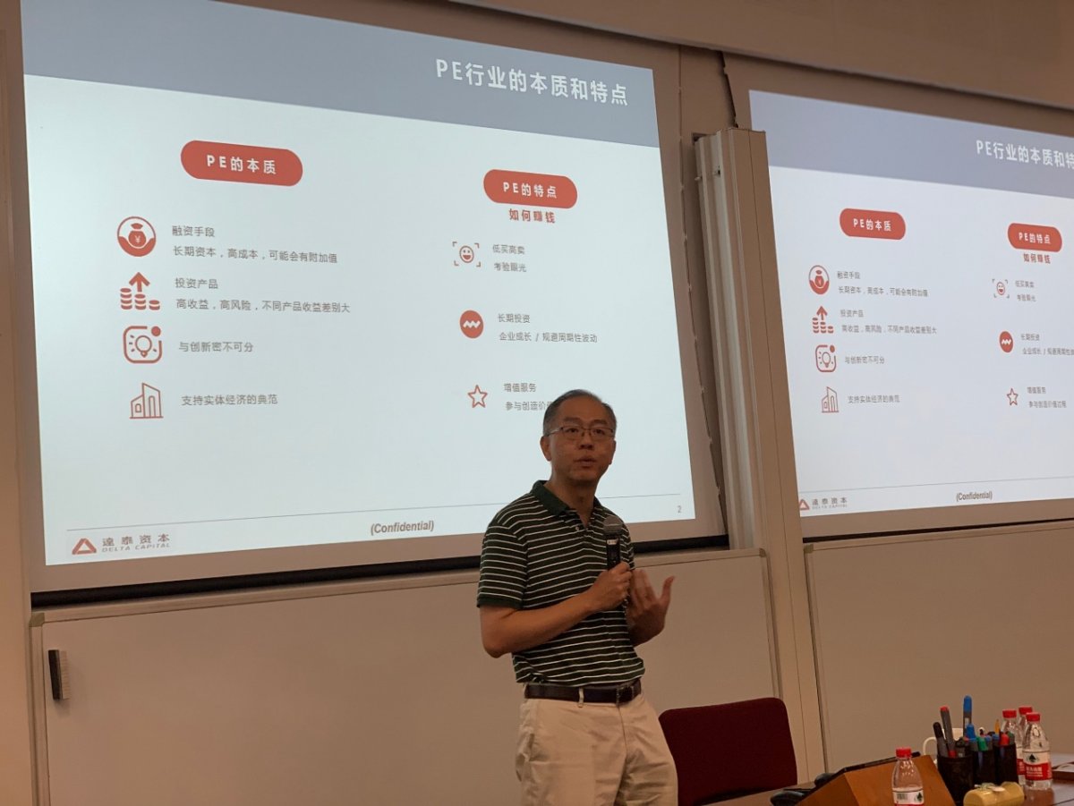 达泰资本创始合伙人叶卫刚先生拥有20多年一级市场投融资经验,他向同学们介绍了中国PE/VC行业的发展现状和挑战,建议有志加入行业的同学加强财务硬技能,并提高沟通软技能,培养良好心态。