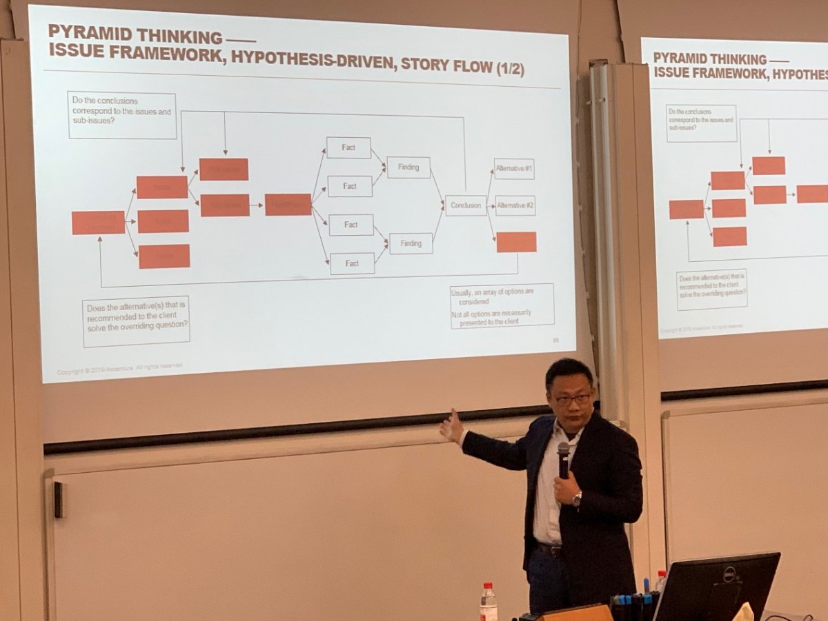 埃森哲中国战略部董事总经理沈军先生(MBA2001)向同学们介绍了管理咨询行业的特性、发展趋势以及科技带来的变化。他从自身职业经历出发,分享了成为一名优秀的咨询顾问必须具备的能力。沈军先生鼓励有志从事咨询工作的同学加强自身学习,适应行业的变化。