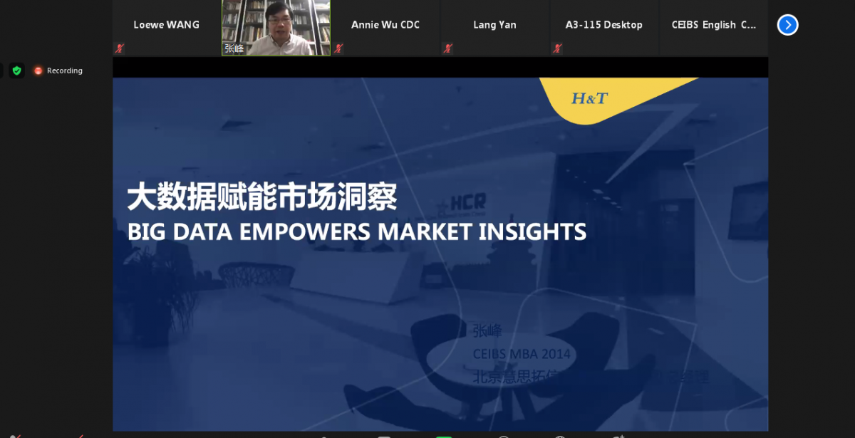 大数据在消费领域如何赋能市场洞察?企业数字化转型的本质是什么?8月13日,在中欧国际工商学院职业发展中心主办的“行业专家谈”分享活动上,来自科技行业的两位校友为MBA学弟学妹们做了精彩分享。北京慧思拓信息服务有限公司总经理张峰(MBA2014)和PTC公司发展战略总监郎燕(EMBA2005),分别从“数据需求侧”和“数据供给侧”两方面展示了大数据的商业魅力。
