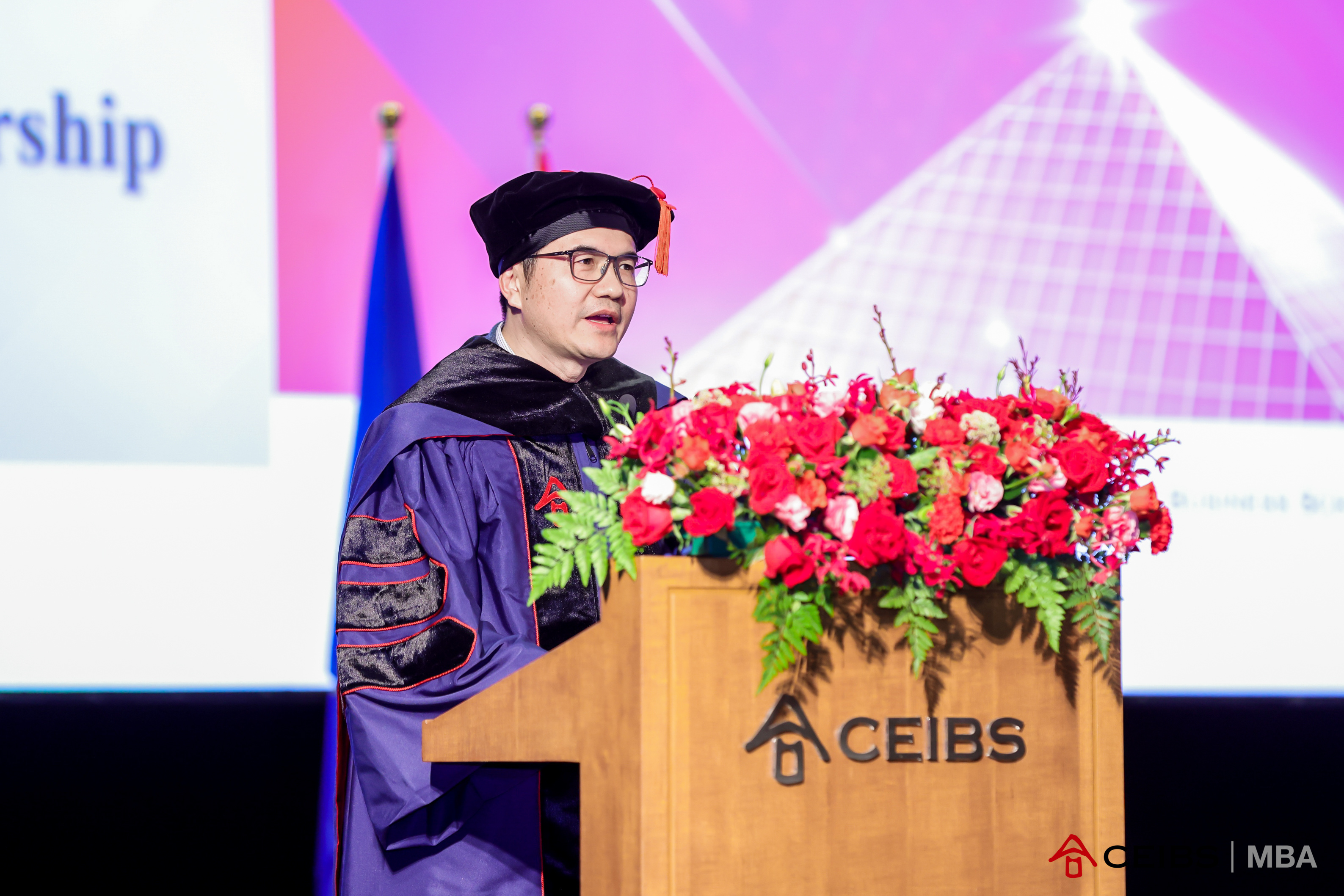 最后,MBA课程主任沙梅恩教授发表演讲,表示MBA2023届毕业生携手走过最艰难最具有挑战性的一年,披荆斩棘开拓出更具可能性的未来。他说:“MBA2023届的同学们坚持不懈、互相合作的精神非常可贵,大家也能够充分利用中欧提供的机会。现在,同学们将在全球都面临着商业、社会和气候等多重挑战的环境下开启职业生涯。如果大家能在这样不确定的时期生存下来,当环境变好时,大家一定会更加茁壮成长。因此,请你们保重身体,保持追求卓越的精神,努力成为具有中国深度和全球广度的负责任的领导者。”