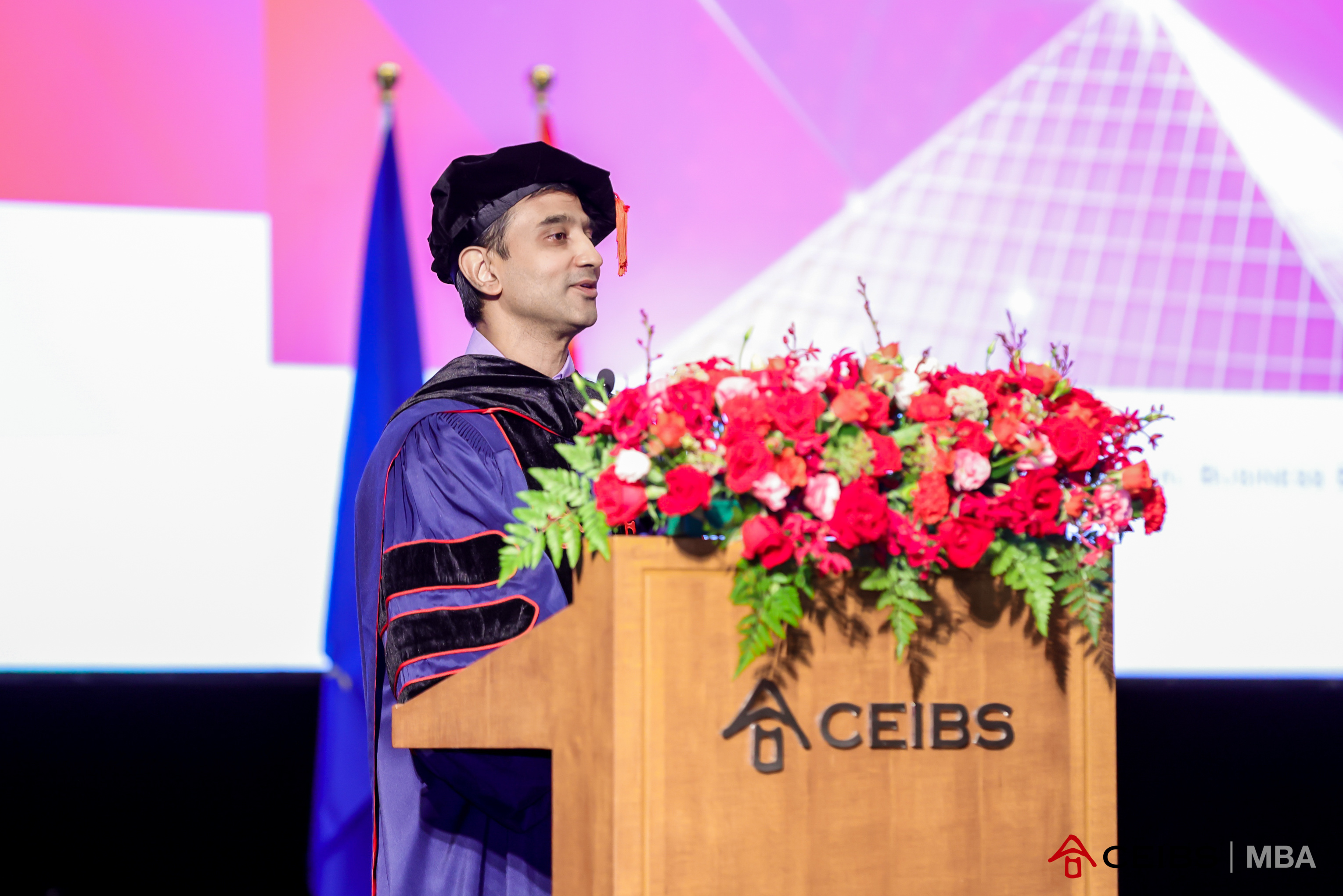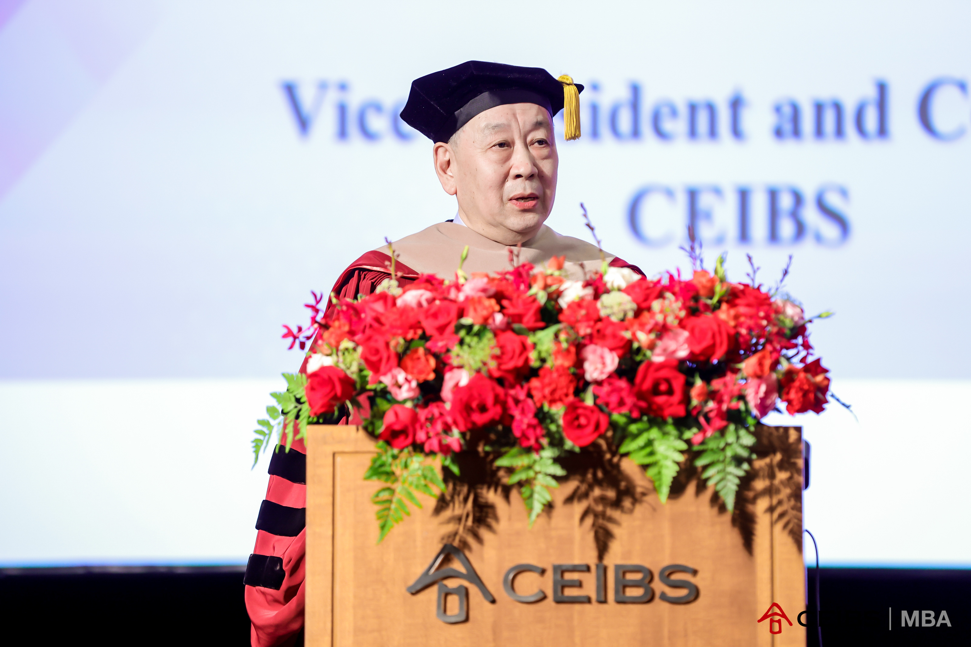 作为本次毕业庆典的主持人,沙梅恩教授宣布中欧MBA2023届毕业庆典正式开始。在庄严的中华人民共和国国歌和欧盟盟歌之后,沙梅恩教授介绍了出席现场的教职员工和特邀嘉宾,并欢迎所有毕业生和亲属的参加。
