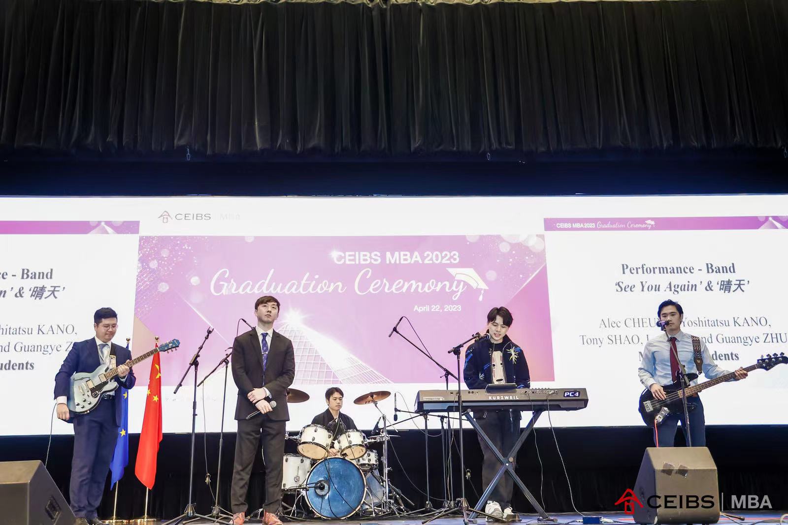 庆典第二部分的开始,MBA2023届的学生乐队带来精彩的歌曲串烧表演,在充满热情与朝气的歌声中庆祝他们的毕业,为同学们送上美好的毕业祝福。
