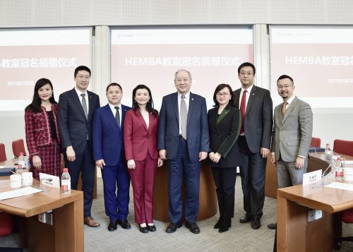 - 2021-03-033月2日,中欧国际工商学院卓越服务EMBA(HEMBA)教室冠名捐赠仪式在中欧国际工商学院(以下简称“中欧”)上海校区举行。“HEMBA教室”项目由中欧教育发展基金会与HEMBA课程2018级校友及2019级同学共同发起设立。作为开放式捐赠项目,“HEMBA教室”将汇集未来HEMBA课程所有毕业捐赠款项,成为HEMBA校友与学院的情感纽带,并将捐赠文化在HEMBA学子中代代传承。 中欧国际工商学院副院长兼中方教务长、中欧教育发展基金会理事张维炯教授,副教务长(欧洲事务)、拜耳领导力教席教授、卓越服务EMBA课程(HEMBA)主任忻榕教授出席捐赠仪式。20余位来自HEMBA课程的校友和同学代表,…
