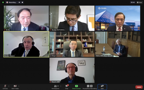 - 2021-02-032月3日,中欧国际工商学院、巴黎大区工商会、法国公共投资银行在巴黎联合举办题为“中欧全面投资协定下,法国企业进入中国市场的历史机遇”的网络研讨会,中国驻法大使卢沙野,欧盟驻华大使郁白(Nicolas Chapuis),中欧国际工商学院特聘教授、世贸组织前总干事帕斯卡尔·拉米(Pascal Lamy),中欧国际工商学院副院长兼教务长丁远教授,巴黎大区工商会主席柯林(Didier Kling)及法国公共投资银行总裁杜福尔克(Nicolas Dufourcq)等出席。 研讨会回顾了中欧双方在去年12月30日原则上达成的中国与欧盟《全面投资协定》的主要内容,高度评价了协议为欧洲企业特别是法国企业…