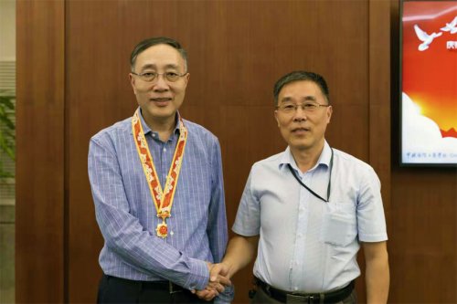 - 2019-09-299月29日,举国同庆新中国70周年之际,上海市外事办公室组织人事处处长陈晖一行来到中欧国际工商学院上海校区,受上级委托向中欧院长李铭俊教授颁发“庆祝中华人民共和国成立70周年”纪念章。该纪念章由中共中央、国务院、中央军委颁发,是新中国成立70周年系列庆祝活动的重要组成部分,旨在表彰为新中国成立和社会主义现代化建设做出重要贡献的人士。院长助理、中欧党委副书记、教务长办公室主任徐惠娟,院长办公室助理主任刘蓓等参与了此次纪念章颁发仪式。 陈晖处长宣读了纪念章发放工作领导小组办公室致李铭俊院长的贺信。信中感谢了他为社会主义现代化建设做出的突出贡献,并表示,“您的卓越成就和辛勤付出,祖国和人民不会…
