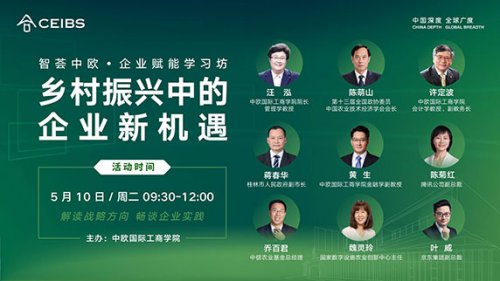 - 2022-05-13“实现共同富裕,乡村振兴是必经之路”,在推进乡村振兴战略的进程中,企业应如何参与,又面临哪些新的机遇?5月10日,中欧国际工商学院在京举办“乡村振兴中的企业新机遇”主题论坛,来自政、商、学各界的9位业界人士和专家学者出席。中欧国际工商学院院长汪泓致开幕辞;第十三届全国政协委员陈萌山,中欧国际工商学院会计学教授、副教务长许定波,桂林市副市长蒋春华分别发表主旨演讲;中欧国际工商学院金融学副教授黄生主持圆桌论坛,来自中环易达、京东、中信农业基金、腾讯等企业的4位管理者分享了各自企业在乡村振兴中的实践。 中欧国际工商学院院长、横店集团管理学教席教授汪泓在开幕致辞中表示,乡村振兴是缩小地区和城乡差…
