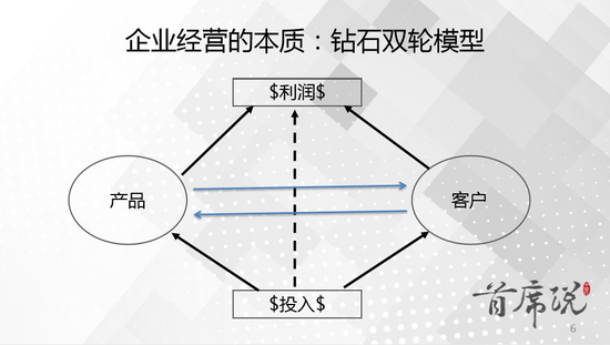 上过我课的同学可能都熟悉我的“钻石双轮模型”,不管什么性质的企业,企业所有的能力最终就是为了这两个轮子——产品和客户。为什么这样说?因为只有有了产品才有交换的资格,只有有了客户并发生交换才能有收入进来,收入减去成本,企业才有机会实现利润。经济学讲供给与需求,但是对于具体的企业,我们能够做的只有具体的产品和客户。
