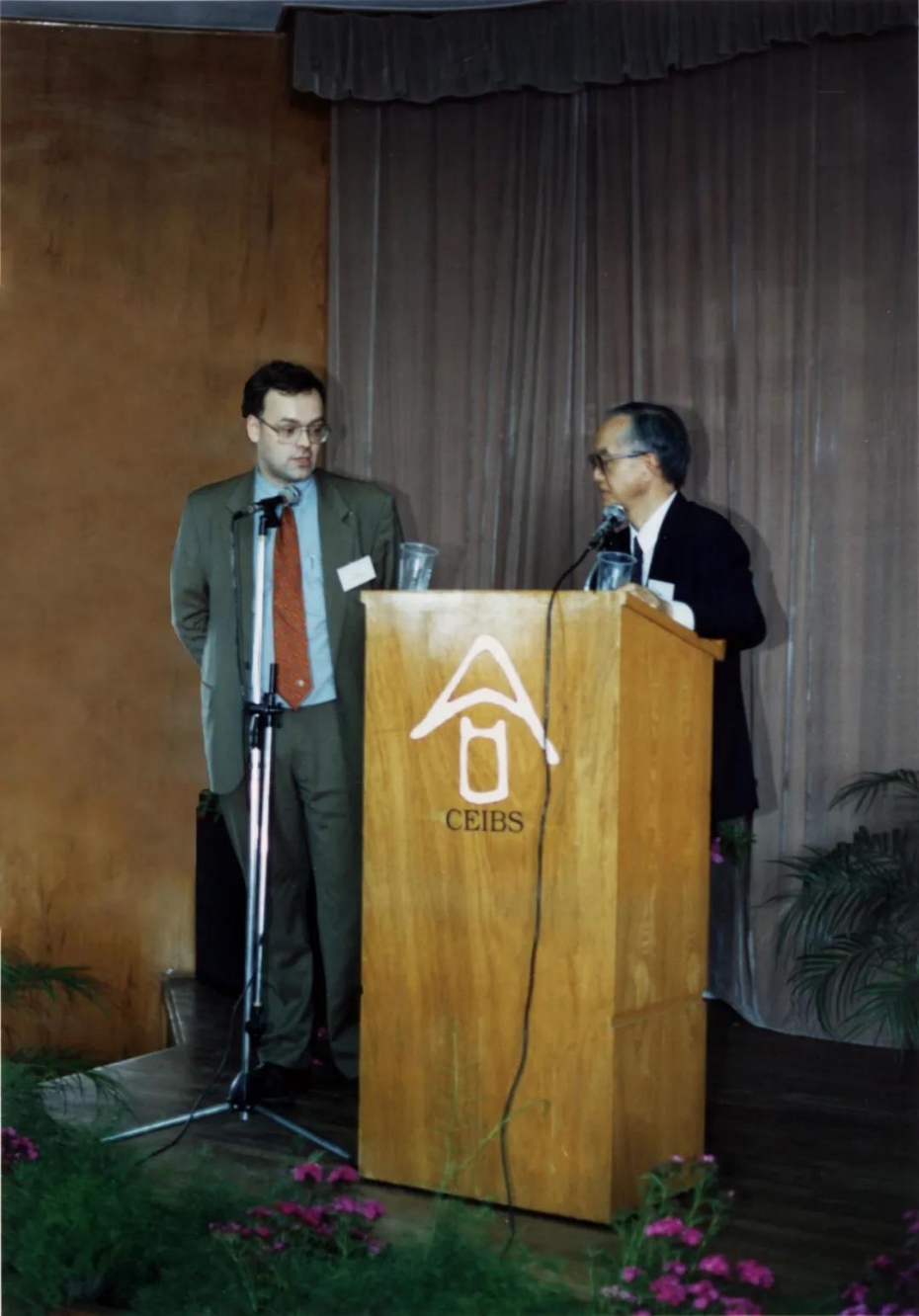 1995年,吴敬琏(右)出席中欧第一届MBA、EMBA开学典礼