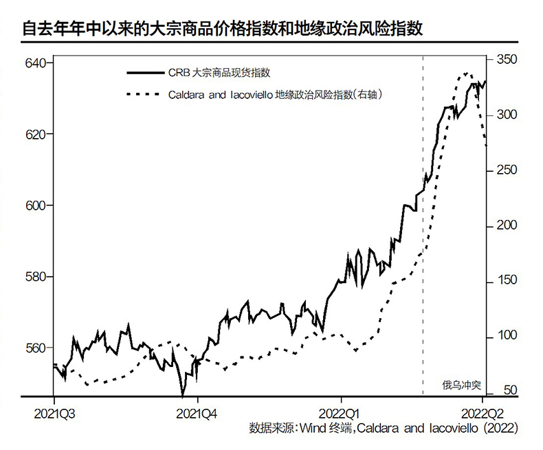 二月俄乌冲突以来,地缘政治风险陡然上升,大宗商品价格剧烈波动,世界范围内爆发能源和粮食危机的风险急剧增加,世界经济稳定复苏再次面临巨大压力。美联储经济学家Dario Caldara和Matteo lacoviello构建的地缘政治风险指数显示,本次冲突已成为2003年伊拉克战争以来最严重的一次地缘政治事件。