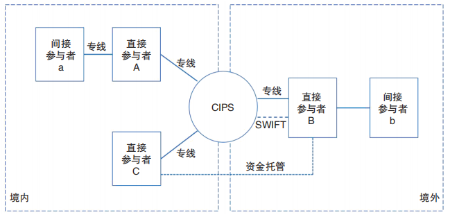 CIPS系统类似于美国的CHIPS系统,为本币提供跨境资金清算。清算方式采用代理清算模式,即一部分通过审核的机构可以直接参与CIPS的清算,而其他机构则需要通过CIPS的直接参与者进行间接的代理清算。虽然CIPS是清算系统,但是CIPS与我国境内的大额支付系统等类似,将报文系统的信息流与清算系统的资金流同时纳入处理。对于CIPS的直接参与者,可以通过专线也可以其他方式(SWIFT)接入CIPS,也就是说选择专线接入方式的直接参与者无须再通过SWIFT系统就可以完成跨境人民币的清算与结算。不过对于间接参与者,仍需要通过SWIFT 来建立与直接参与者的联系,进而完成 CIPS的清算与结算。