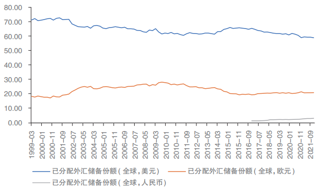 注:全球外汇储备货币结构根据国际货币基金组织公布的官方外汇储备货币构成(COFER)计算,其统计口径包括所有已披露具体币种的官方外汇储备。