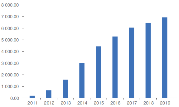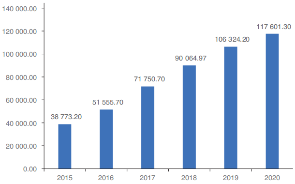 随着我国移动互联网的普及,我国的网上商品和服务零售额高速增长,截至2020年高达11.76万亿元,同比增长10.6%。我国大部分的小微企业都离不开互联网上产生的交易流水——从原材料的采购,到二维码的收付款。这些交易流水背后隐含了大量的企业运营信息,企业商品交易量可以反映出企业资金需求和经营风险,这些信息都可以被金融科技利用起来,企业在贷款时就无须进行不动产或股权质押。