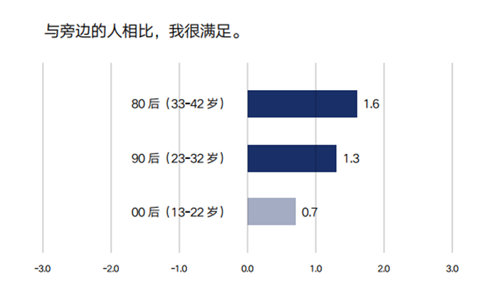 幸福感:代际越年轻,幸福感越低。
