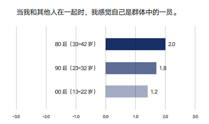 归属感:代际越年轻,群体归属感越弱。
