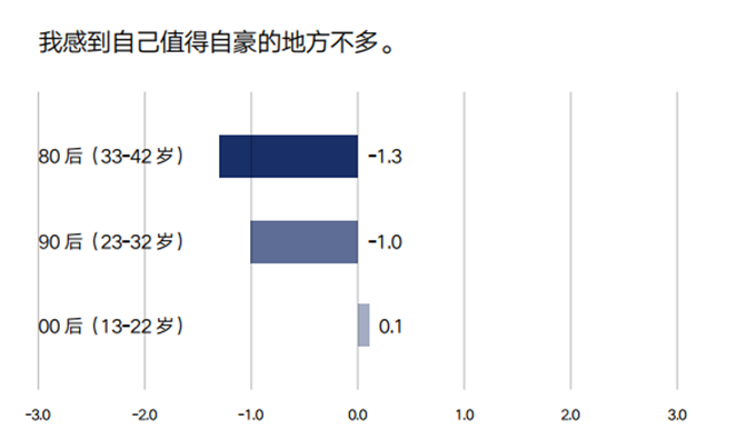 自尊感:代际越年轻,自尊感越低。